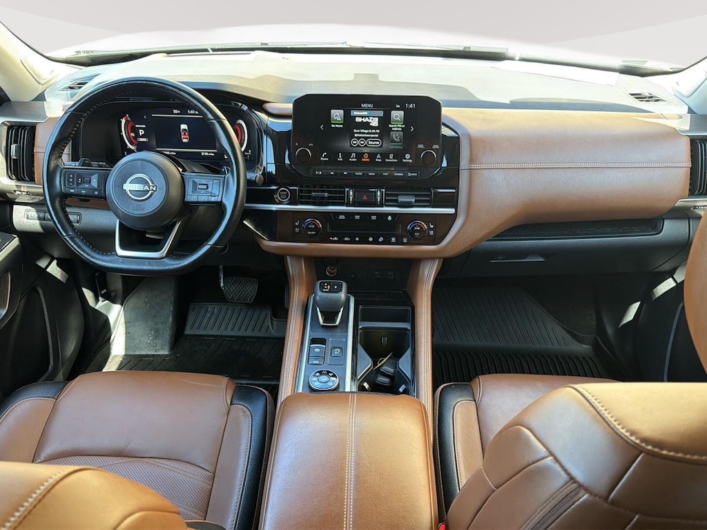 CHESTNUT, SEMI-ANILINE LEATHER SEATING SURFACES, [C03] 50 STATE EMISSIONS, [X01] PLATINUM CAPTAIN CHAIRS PACKAGE, [M92] CARGO PACKAGE, [N92] LIGHTING PACKAGE (N92), [B92] BLACK SPLASH GUARDS (SET OF 4), [L93] CAPTAIN'S CHAIRS CARPETED FLOOR MATS (SET OF 4), [B93] CROSS BARS, [H92] NISSAN USB CHARGING CABLE SET